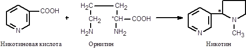 Никотиновая кислота и орнитин в листьях табака превращаются в никотин: