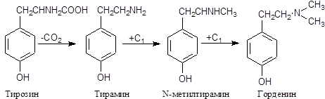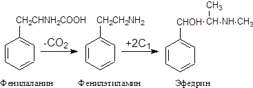 Тирозин служит источником горденина; из фенилаланина образуется эфедрин.