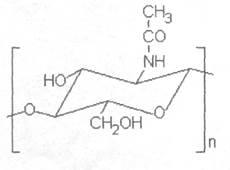 Хитин — линейный аминополисахарид, состоящий из N-Ацетил-2-амино-2-дезокси-О-гликопиранозных звеньев.