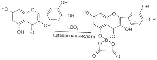 6. Ряд флавоноидов дает окрашенные комплексы с ионами алюминия, циркония, окрашенные, как правило, в УФ-свете в ярко-желтый цвет, что используется при их хроматографическом обнаружении.