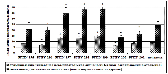 Данные о влиянии исследуемых веществ на двигательную и ориентировочно-исследовательскую активность животных представлены на рис.1.