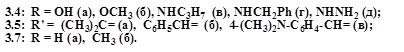 3.8, X = NHNH2 (а – 2.1), OH (б), OMe (в), NH2 (г); 3.9, R = NH2, Alk = Et (a), Me (б), R = H, Alk = Et (в), Me (г);3.12, Alk = Et (a), Me (б); 3.14, R = H (a), NH2 (б).