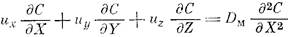 Величину и направление скорости в каждой точке определяют решением уравнений гидродинамики. В правой части уравнения (7) оставлена производная только по координате X, нормальной к поверхности, так как по всем другим направлениям перенос вещества молекулярной диффузией пренебрежимо мал. Граничные условия для уравнения (7) определяются тем, что диффузионный поток на твердую поверхность катализатора равен скорости химической реакции, а на достаточном удалении от поверхности концентрация равна С∞ .