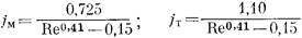 Функциональные зависимости, описывающие процессы массо — и теплопередачи, почти не отличаются друг от друга и для зернистого слоя сферических частиц выражаются формулами: