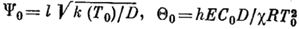 Поскольку величины Ψ0и Θ0зависят от поверхностных значений концентрации и температуры и потому не являются характерными параметрами процесса, они должны быть выражены через параметры