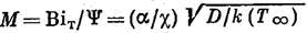 где х — безразмерная координата (с масштабом l ) направленная вдоль внешней нормали к поверхности, и Biм = βl / D, диффузионное и тепловое числа Био.