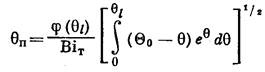 Переходя к интегрированию уравнения (38), будем считать величину θП, а следовательно, и значения параметров Ψ0и Θ0известными. Далее можно найти величину θП, подставляя полученное решение в граничное условие (20). Таким образом, будем решать уравнение (38) с граничными условиями: