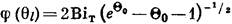 Используя значения фактора эффективности η, найденные путем решения задачи с фиксированными С0, T 0, можно вычислить правую часть уравнения (34) φ (θП ); после этого значения внешнего разогрева θП определяются как точки пересечения графика функции φ (θП ) с прямыми с наклоном В iТ, проведенными через начало координат.