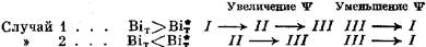 Возможны следующие схемы переходов между стационарными режимами процесса при изменении температуры среды и, следовательно, параметра Ψ: