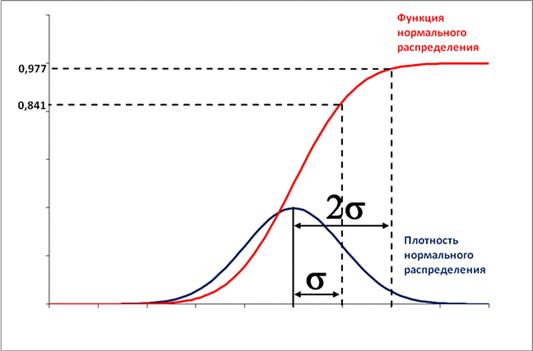 Вероятность нормальной случайной величины не превышать сумму математического ожидания и одного, двух и трех стандартных отклонений составляет соответственно 84,1%, 97,7% и 99,9%.