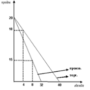 крайние точки линии торговых возможностей – 20 млн.т.продовольствия, что соответствует полной специализации страны Х на производстве продовольствия, и 40 млн.шт.одежды, которые страна Х получила бы, если по установленной мировой цене обменяла все произведенное продовольствие на одежду).