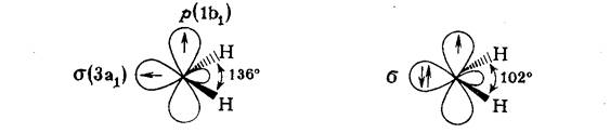 В соответствии с предсказанием первое возбужденное состояние должно быть синглетом, валентный угол в котором меньше, чем в случае триплета. Так, для метилена и многих других карбенов различия в энергии между α — и р -орбиталями невелики, и поэтому триплетное состояние имеет более низкую энергию, чем синглетное состояние, вследствие большей энергии отталкиваний между электронами в последнем. В настоящее время разность в энергии между двумя состояниями оценивается в 45кДж-моль-1. Согласно расчетам, стабилизация синглетного основного состояния за счет большего р-расщепления может быть достигнута уменьшением валентного угла или взаимодействием одной из несвязывающих орбиталей карбена с орбиталями заместителя, подающими или принимающими электроны от карбена. Примерами этого типа являются и галокарбены. Синглетное основное состояние таких карбенов, а также алкоксикарбонил и ацилкарбенов подтверждается экспериментальными данными.
