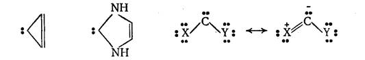 Карбены — чрезвычайно реакционноспособные нейтральные частицы R2 C:, в которых углерод соединен с двумя группами ковалентными связями и обладает двумя несвязанными электронами [1]. Карбены являются истинными интермедиатами с характерной реакционной способностью и селективностью, которая не зависит от способа генерации, но зависит от природы заместителей R и электронного состояния частицы в момент реакции. Электронное состояние играет очень важную роль, поскольку реакции синглетных карбенов, в которых два несвязанных электрона спарены, по характеру совершенно отличаются от реакций триплетных частиц, в которых электроны с параллельными спинами расположены на разных орбиталях. Проведена большая теоретическая работа с целью предсказания электронной структуры и геометрии карбенов. Сам метилен в основном состоянии является скошенным триплетом, в котором один из несвязанных электронов находится на σ-орбитали, обладающей значительным р-характером, а другой электрон занимает р-орбиталь, перпендикулярную плоскости молекулы.