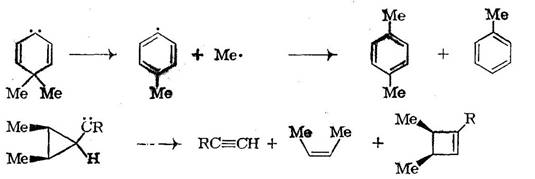 Другими характерными для карбенов перегруппировками и фрагментациями являются превращения циклопропенилидена в аллен, циклобутилидена в метиленциклопропан.