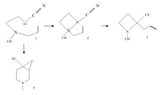 В результате таких процессов могут быть получены либо замещенные четырехчленные системы типа 3, либо бициклические системы типа 4. Все процессы экспериментально изучаются группой Ф. Кути в Университете Версаля в тетрагидрофуране (THF).