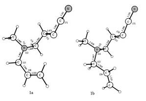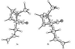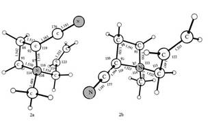 Table 1. Calculated total (E, in a.u.) and relative (E, in kcal/mol) energies of the thermodynamically stable isomers 1-4 in the gas phase and in the THF. Values in parenthes are total and relative energies of systems 1a and 1b in triplet state.