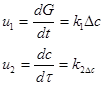 причем u может быть выражено через изменение массы продукта D в единице реакционного объема концентрации с или степени превращения х во времени, т.е.