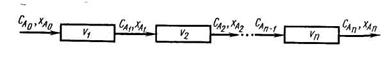Движущая сила процесса DС в каскаде будет больше, чем в единичном реакторе. Разница в DС будет тем большей, чем большее число реакторов в каскаде. При бесконечно большом числе реакторов в каскаде DС каскада приближается к DС реактора идеального вытеснения.