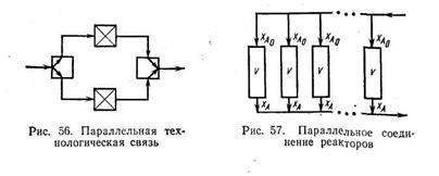 Параллельная технологическая связь — это такая связь, когда выходящий из i-гo элемента ХТС поток разбивается на несколько параллельных подпотоков (рис. 1, б). Параллельная технологическая связь применяется для повышения мощности, надежности, гибкости ХТС, а также при параллельном получении на базе одного исходного вещества двух или нескольких продуктов.