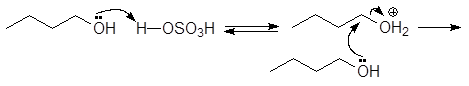 В присутствии концентрированной серной кислоты, безводной фосфорной кислоты или таких катализаторов, как оксид или фосфат алюминия от двух молекул спирта отщепляется вода: