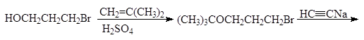 Поэтому гидроксильную группу в 3-бром-1-пропаноле сначала нужно защитить превратив ее в трет -бутоксильную, а затем действовать ацетиленидом натрия: