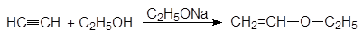Спирты присоединяются к ацетилену в присутствии алкоксидов и гидроксидов щелочных металлов с образованием виниловых эфиров: