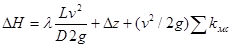2. С учетом найденного D рассчитываем полную потерю давления или напора. Проверяем соответствие заданных потерь давления или напора расчетным