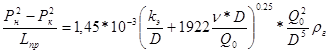 где Рн, Рк – соответственно начальное и конечное абсолютное давление газа на расчетном участке трубопровода, атм.