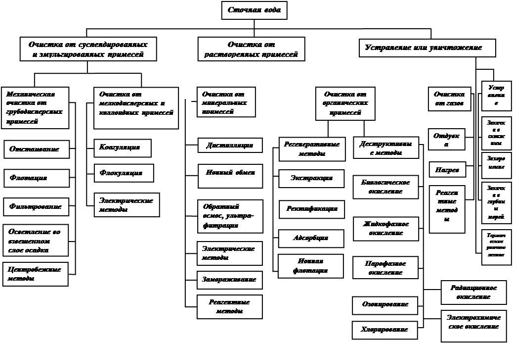 Методы очистки сточных вод можно разделить на механические, химические, физико-химические и биологические, когда же они применяются вместе, то метод очистки и обезвреживания сточных вод называется комбинированным. Применение того или иного метода в каждом конкретном случае определяется характером загрязнения и степенью вредности примесей.