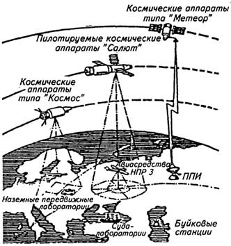 В структуру космической системы изучения природной среды Земли и Мирового океана в подсистему получения дополнительной информации включены также научно-исследовательские суда-лаборатории, буйковые станции и наземные передвижные лаборатории.