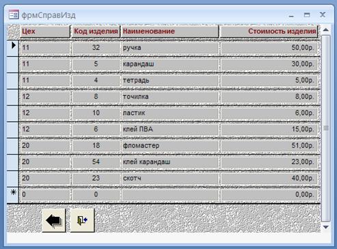 — тблСправИзд — содержит информацию о выпускаемой продукции, ее наименование, основную зарплату на изделие, ;