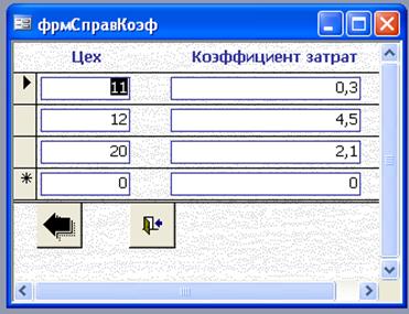 — тблСправКоэф – содержит информацию о цехе и коэффициенте по затратам
