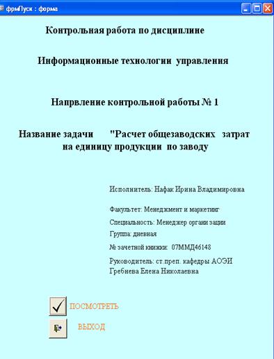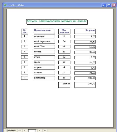 1.3.1. В результате решения задачи следует получить отчет общезаводских затрат на единицу продукции по заводу