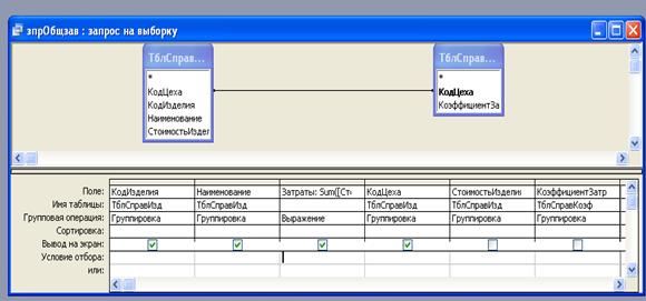 Рис.5. Запрос для расчета общезаводских затрат на единицу продукции по заводу
