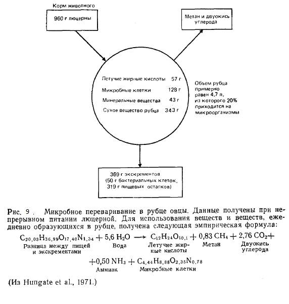 2-метилмасляной кислотах и аммиаке; многие из этих веществ поставляются другими населяющими рубец бактериями. Флора рубца отнюдь не является смесью микробов-универсалов. У многих из них специализированный обмен веществ, ограничивающий их распространение только этой уникальной средой.