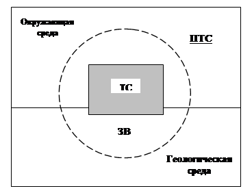 ТС – техническая система; ПТС – природно-техническая система; ЗВ – зона воздействия (влияния) технической системы на геологическую среду.