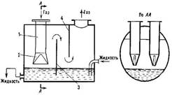 Разновидностью абсорберов с вращающимся погруженным конусом является показанная на рис.11, б ротационный аппарат Сафина.
