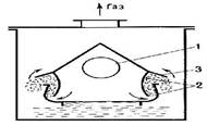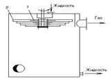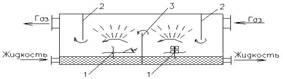 Рис.12. Ударно-распылительный абсорбер: 1 — перегородка; 2 — гидравлический затвор; 3 — порог перелива.