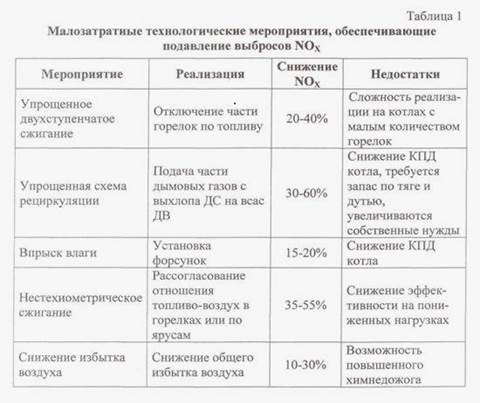 Сжигание природного газа с контролируемым умеренным недожогом позволяет снизить выбросы NOX на 30-40% при одновременном повышении КПД котла.