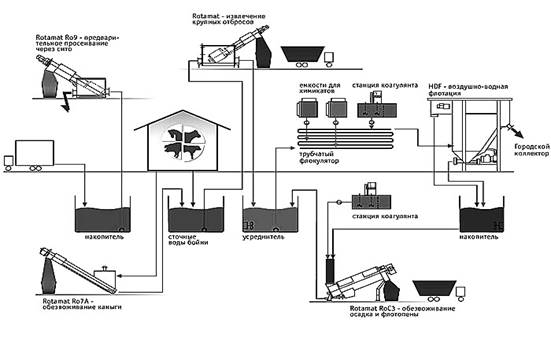 Большинство крупных предприятий имеют собственные очистные сооружения. В этом случае сточные воды после очистки от шлама и легко всплывающих и оседающих веществ поступают на сооружения механической очистки.