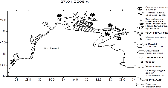 Ледовый режим в районе о. Змеиный слабо изучен вследствие отсутствия регулярных наблюдений. В период работы на острове метеорологической станции с июня 1951 г. по апрель 1960 г. наблюдения за льдом не проводились. Из ледовых наблюдений имеются лишь материалы попутных судовых наблюдений за льдом за семнадцать зим с 1925 по 1960 гг. и данные тридцати пяти авиационных ледовых разведок за период 1977-1988 гг. [1,7]. Использование спутниковых систем с 1993 года позволило проводить более детальные исследования ледовых условий в этом районе.