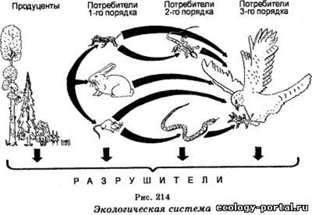 в виде пирамиды, состоящей из нескольких трофических уровней (рис. 215). У основания расположены