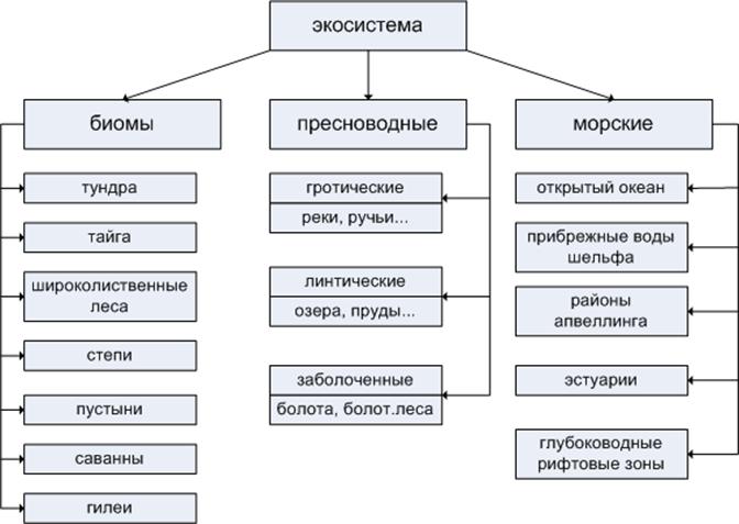 От экосистем следует отличать биомы, под которыми, как показано выше, понимают