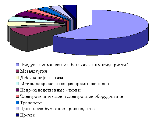 Рис. 2. ЗАГРЯЗНЕНИЕ ОКРУЖАЮЩЕЙ СРЕДЫ опасными отходами. Основная доля опасных отходов образуется за счет продукции химической промышленности