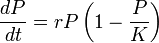 Обозначая через P численность популяции (в экологии часто используется обозначение N ), а время — t, модель сводится к дифференциальному уравнению:
