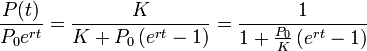 Точным решением уравнения (где P — начальная численность популяции) является логистическая функция, S-образная кривая, (логистическая кривая):