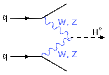 Фейнмановские диаграммы, показывающие возможные варианты рождения W- и Z-бозонов, которые в совокупности образуют нейтральный бозон Хиггса