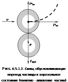 После отрыва частиц под действием воздушного потока возникает вертикальная составляющая аэродинамической силы Fаэв. Горизонтально и вертикально направленные силы и обусловливают переход частиц в аэрозольное состояние; движение частиц в этих условиях на рис. 6.5.1.2 показано пунктиром.